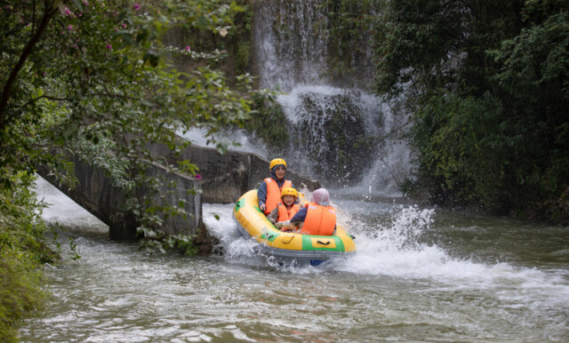 今夏新亮相的华蓥山欢乐谷漂流项目,同样是年轻人和亲子家庭追捧的“清凉利器”。全长3.5公里、总落差132米的河道,配合新增的“时空隧道”光影场景,带来视觉与体感的双重刺激。