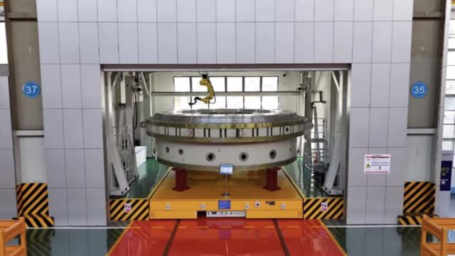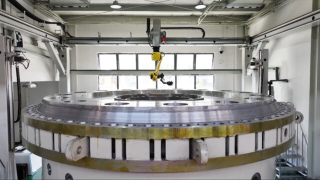 走进东方电机大型清洁能源装备重型制造数字化车间,机械臂正对一个抽水蓄能机组的底环部件进行精确测量,该部件重量超过70余吨。过去,装配几十上百吨的庞然大物往往依赖人工靠经验的传统模式,而如今,整个流程已全面升级为数字化、智能化的新模式。