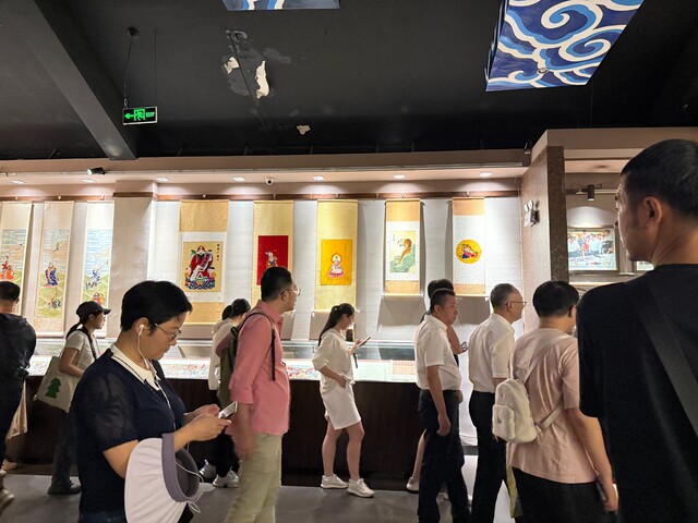 陈强是绵竹年画艺人,也是省级工艺美术大师。他在年画村里经营着一间工作室,采访团来到这里,一边体验年画拓印的制作,一边询问陈强的订单情况。陈强说,工作室的产品既保留了年画的传统元素,又融入了现代潮流设计理念,深受游客喜爱,远销50多个国家和地区,目前下半年的订单80%来自海外,主要是东南亚地区。