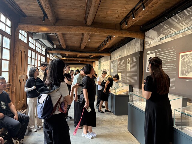 青砖灰瓦的老厂房间,蒸汽观光小火车鸣响汽笛,载着游客穿梭于百年丝绸工厂。轰鸣的织机旁,年轻人正体验着非遗织染技艺——这座被誉为“中国丝绸工业活化石”的百年老厂,正焕发前所未有的新生机。