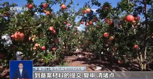 水果出口海外拓展专员 段天雄:跨境水果贸易已经成为当前极具潜力的创业赛道。我们的工作就是一站式解决果农基地种植、出口通关等相关配套服务。石榴如何出口海外去呢,首先要完成果园备案。