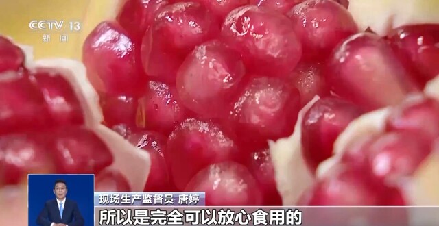 总台央视记者 蒋树林:大家看切开的石榴像一个花瓣一样,味道非常清甜。网上有一种说法是吃石榴,如果吃籽的话会伤肠胃,您怎么看?