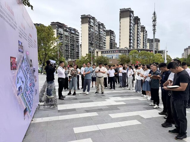 ▲采访团在隆昌市“港盈新街⾥”文旅商业街走访