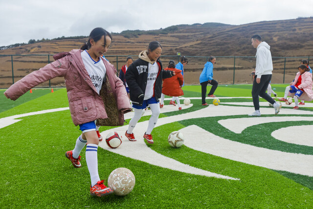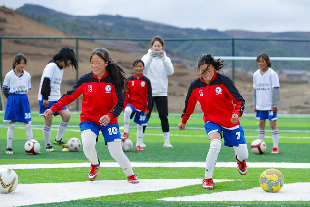足球就这样在瓦吾小学发展起来,幼儿园到一年级培养兴趣,二年级抓基本功,三年级以上上对抗。2015年首支球队成立,2018年女队成立。学校在昭觉县的比赛名列前茅,山下许多学校的主力都是瓦吾小学的毕业生。孩子们还坐上动车走出了大山,看了中超比赛,和球队的梯队交过手……