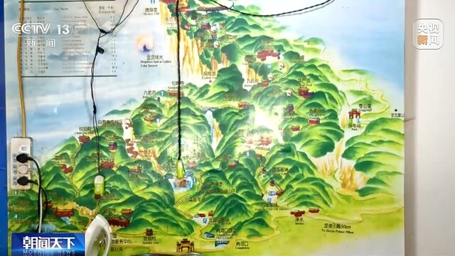 张安秀告诉记者,这几年来峨眉山旅行的游客越来越多,他们的收入也跟着不断增加。为了更好地展示峨眉山,她特意在墙壁上挂了一幅景区线路图。