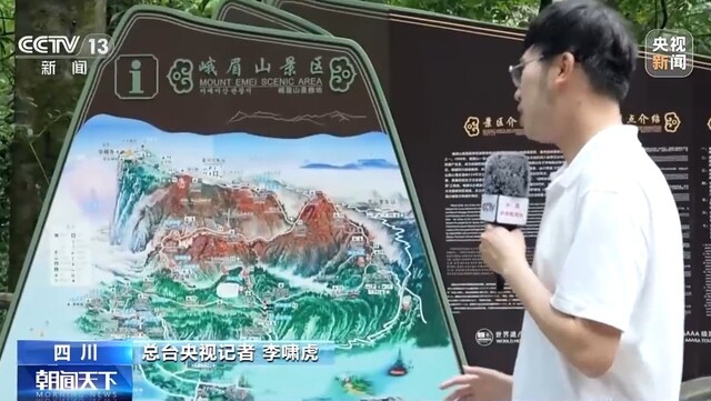 总台央视记者 李啸虎:这里是峨眉山景区的徒步步道,从我所在的地方出发,总长20多公里的两条徒步路线,是峨眉山生物多样性分布最为广泛密集的区域,有着藏猕猴、珙桐等多种国家保护动植物。以往人们大多选择乘坐摆渡车和索道,直接前往山顶打卡。如今,越来越多的游客选择徒步路线,体验生态之美。