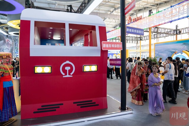 今年持续火爆出圈的“熊猫专列”也直接“开”进了四川馆内。作为银发经济领域的全新消费产品,“熊猫专列”自2021年上线以来,已累计开行140列,接待游客4.24万人次,服务范围广泛,覆盖港澳台、东南亚及美加等地的入境游客,广受消费者喜爱。其中,于今年上线的“成都号”,其接待境外客源占比更是高达60%。