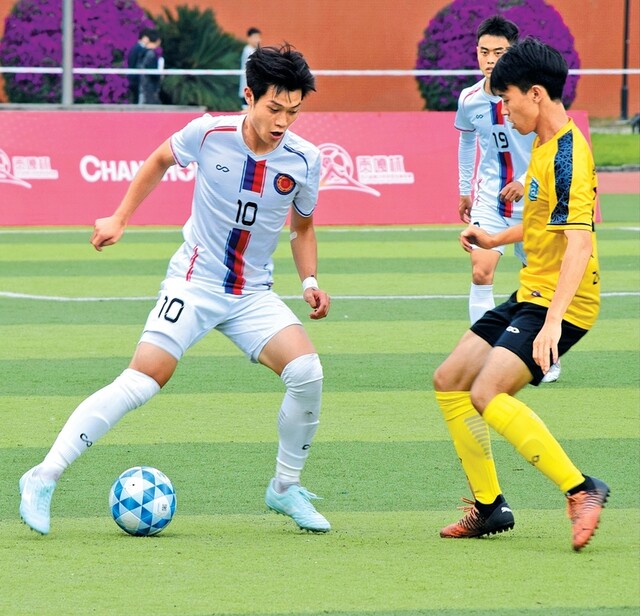 杨斯寒(左)代表学校参加“贡嘎杯”校园足球联赛