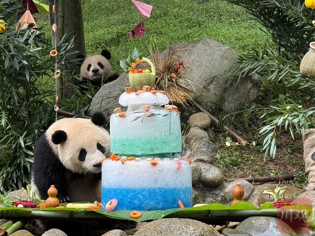 9月12日,中国大熊猫保护研究中心2025大熊猫生日季丰容第三场活动在都江堰基地举行。本次活动主题为“绿水青山间的传承”,主要聚焦大熊猫饲养丰容、疾病防控、老年大熊猫照护等内容,通过线上直播与线下科普展示等方式,向公众展示大熊猫保护工作中人与自然和谐共生的理念与实践。