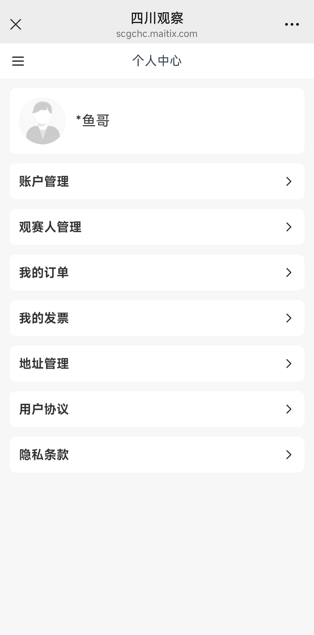 3、个人中心,在“观赛人管理”可提前添加观赛人信息,每张票均需对应一个实名身份。当前支持中华人民共和国居民身份证、护照、港澳居民来往内地通行证、台湾居民来往内地通行证、外国人永久居留身份证。