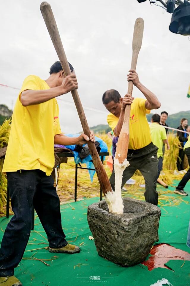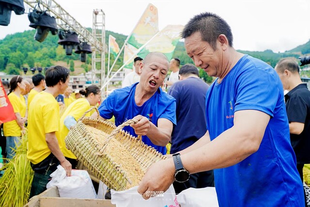 比赛规则严苛而务实,不仅要快,更要“颗粒归仓”,漏割、断裂浪费、谷粒飞溅都会被扣分。割稻的村民弯腰如弓,镰刀飞快起落,动作行云流水;打谷的汉子则铆足了劲,每一摔都力求干净利落,让谷粒尽数脱落。裁判们手持卷尺和称重器,在每一块比赛田里仔细测量、称重。对他们而言,比拼的不仅是技艺,更是对粮食的敬畏。