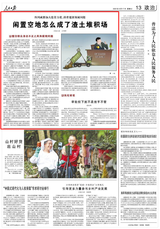 以此案为突破口,成都将建筑垃圾治理纳入集中整治一体推进,从重点对象、关键环节、行业系统三个维度精准发力。“我们对2017年以来的600余条涉渣问题线索和信访举报开展复盘清查,重点关注群众长期反映且未解决问题,确保快查快结、查深查透、处置到位。”成都市纪委监委相关负责人介绍,截至目前,全市共计排查建渣领域问题线索75条,立案75件119人。