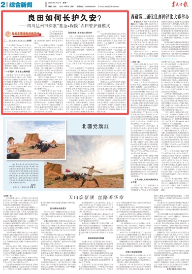 为进一步完善高标准农田管护体系,今年达州市还探索了引入保险机制,通过与保险公司合作,推出专门针对高标准农田设施的保险产品,覆盖因自然灾害、意外事故等导致的设施损坏风险,只需支付少量保费,即可在设施受损时获得及时赔付,有效缓解了“维修难、维修贵”的问题。