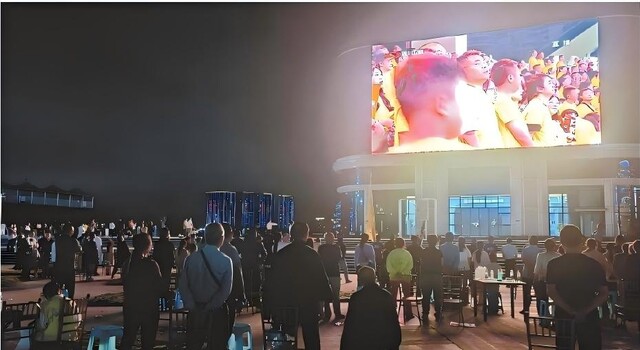 在高坪区川东北金融中心,一块裸眼3D大屏成为了“川超揭幕战的“吸睛利器”。当晚,1000余名球迷汇聚于此,其中不仅有高坪本地球迷,更有大批从顺庆区、嘉陵区专程赶来的支持者。裸眼3D技术带来的极致临场感,让屏幕上球员的奔跑、抢断、射门仿佛近在咫尺,每到比赛关键瞬间,现场雷鸣般的欢呼声便会响彻夜空,不少球迷举着手机全程拍摄,不愿错过任何一个精彩画面。