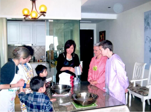 2009年,孙阿姨在家教法国朋友做包子(图据受访者)