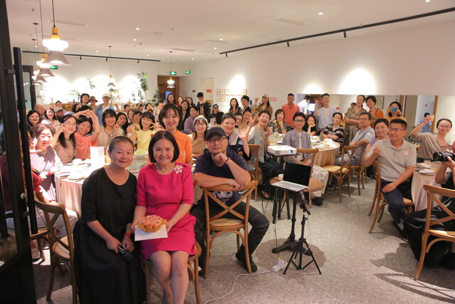参加聚会的朋友里,有的从她刚到成都就相交至今,漫长时间里彼此已经是亲人一样的存在;也有跟她学习过做菜的学生,曾一起在灶台到餐桌的方寸之间,共同将‘好好生活’具象化为一道道菜肴;还有一起合作过的伙伴,移动厨房、餐桌上的台湾味、台湾办桌遇见坝坝宴等项目里,有着她在四川生活的点滴烟火;当然,更有慕名而来的新朋友,一位捧着一束花来的女生感叹,“她比想象中更年轻、更活泼、更有感染力。”