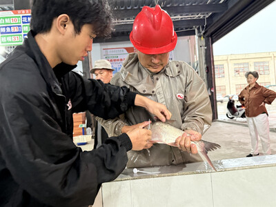 工作人员与经销商默契配合,将渔获快速倒进分拣池,按白鲢、花鲢、鲫鱼等品种分类,再用专用网兜称重、计数。整个分拣过程不超过1小时,完成分类的鲜鱼随即被装入带有充氧装置的水箱,由专用保鲜车运往城区。