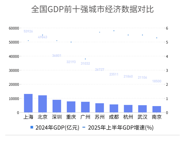 跳出西部看成都。2011年,成都以6950.58亿元的经济总量首次闯入全国城市GDP前十强城市榜单,继重庆之后助力西部地区再拿下一个珍贵席位。此后,“东强西弱”的格局一点点被打破。就在去年,重庆实现对广州的超越,攀升到全国经济总量第4的位置,成都也连续几年稳定在全国第7的位置。今年上半年,成都GDP同比增速领跑全国GDP前十强城市。