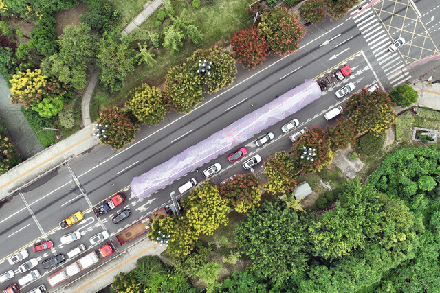 他们用自制工具将红绿灯杆拉开,待车队通过后,立即将灯杆拉正复位,避免影响交通。多年的“押镖”,让“镖师”们配合默契,“这一路有多少个‘障碍’,我们都记在心里了。”负责排障的廖明丹说。