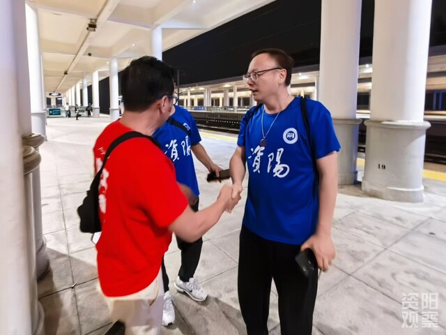 比赛结束当晚,内江北站候车大厅里,几名身着蓝色球衣的资阳球迷,与身穿红色球衣的内江球迷再次相遇。没有胜负的隔阂,只有调侃与问候。