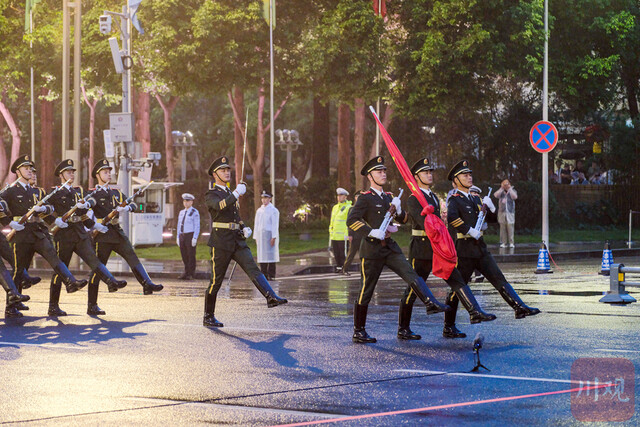 随着嘹亮的国歌奏响,升旗手稳稳扬起国旗,五星红旗在庄严的注视中缓缓升起。伴随最后一个音符落下,旗帜定格于天空中,广场瞬间掌声雷动。
