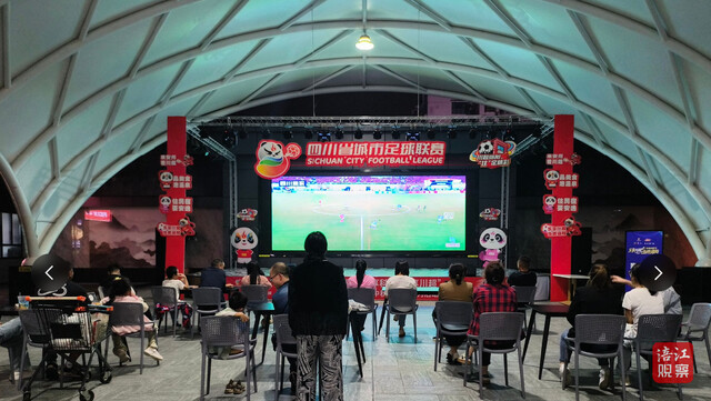 场内燃,场外也不差。绵阳市商务局消费促进科相关负责人告诉记者,川超期间,他们在万达广场、绵州记忆、江油圣名国际广场、三台潼川古城等核心商圈和文旅,设置了19个配备高清大屏、专业音响、舒适座椅的第二观赛点,配套川超主题装饰,互动打卡点和饮品售卖区,让广大市民和游客朋友在户外也拥有一个沉浸式的观赛体验。通过营造赛事+消费场景,将赛事“流量”转化为消费“增量”,全面激发消费市场活力。