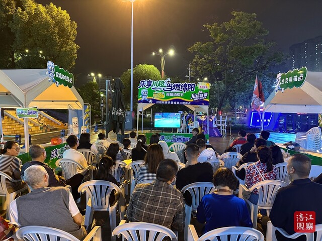 第二观赛点——安州区汇星广场同步设立活动现场,纵使夜雨绵绵,仍挡不住市民的观赛热情。