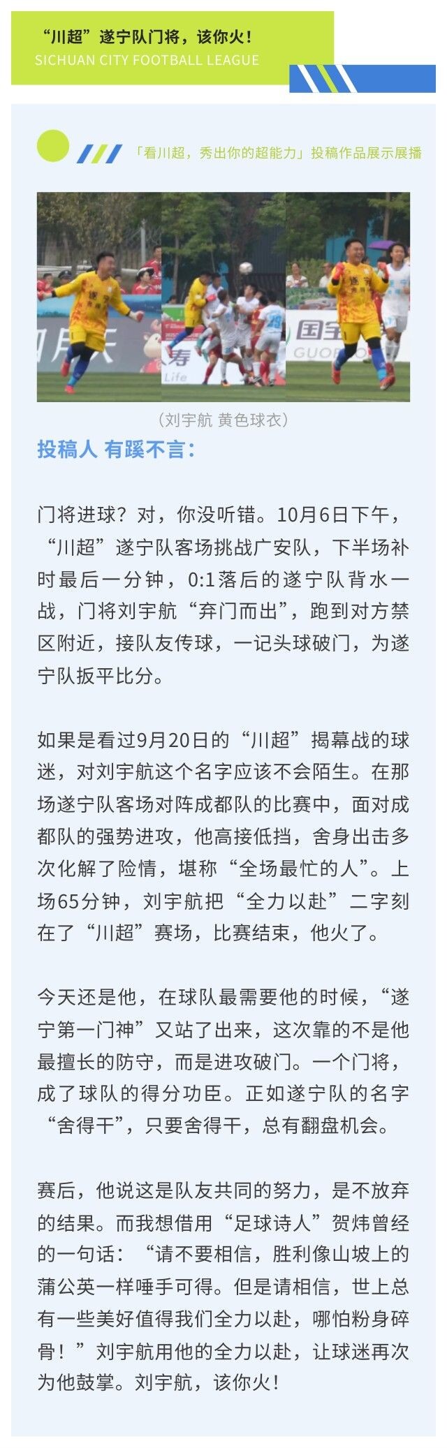 小编内心:守门员进球了!“川超”,一切皆有可能!