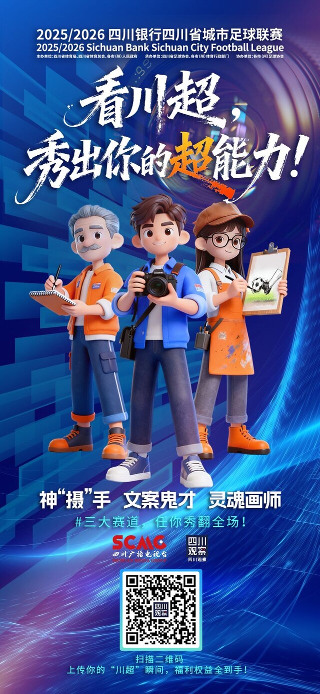 自2025/2026四川银行四川省城市足球联赛(简称“川超”)拉开战幕以来,我们面向广大球迷、球员发起的「看川超,秀出你的超能力」短视频图文征集活动收到了大量作品。一幅幅动人画面,一次次暖心互动,一个个可爱创意,共同交织出这场属于所有人的足球盛宴。