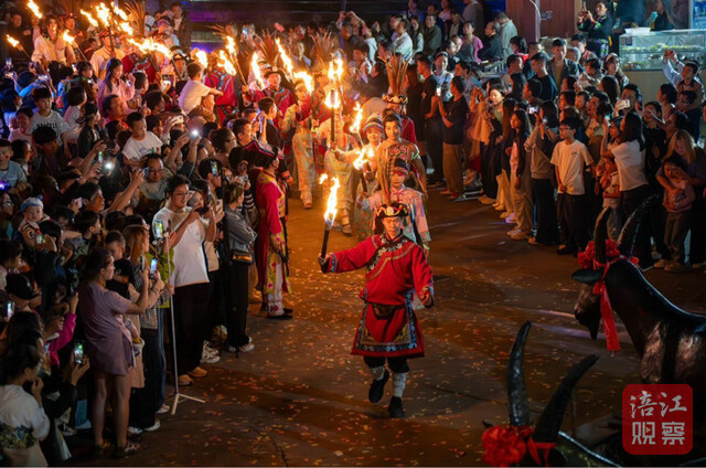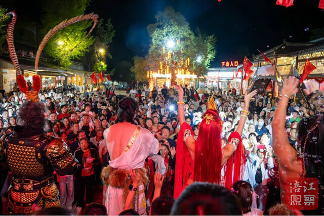 除了白天的文化体验,夜晚的萨朗狂欢节同样精彩。游客可以参与“护送白石、接受赐福”仪式,与巡游的羌族神话NPC互动。来自成都的大学生王强兴奋地说:“和身着传统服饰的羌族演员合影,感觉特别有意思,这些照片发朋友圈肯定能收获很多点赞。”