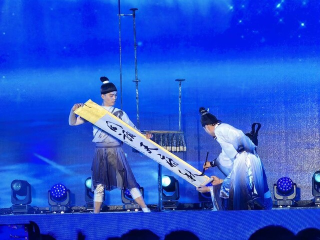 音乐缓缓流淌,一场关于诗、月与故乡的对话,正悄然酝酿。这场以“太白故乡月·同诵天府秋”为主题的文化盛宴,巧妙地将李白诗歌的浪漫情怀、中秋佳节的团圆意象与现代科技的震撼表现融为一体。在虚拟与现实交织的舞台上,数字技术复原的李白从诗句中踏月而来,高空书法家倒立挥毫《将进酒》,孩子们用清澈嗓音唱响《玉盘》;各地代表性的非遗表演、民间歌舞、诗词吟诵轮番上演,充分展现了巴蜀大地的文化多样性。这些,不仅仅是一场演出的亮点,更是江油文旅资源的创新表达。