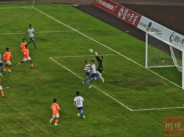 泸州队守门员范德顺无情拒绝自贡队员射门。(图据泸州融媒)