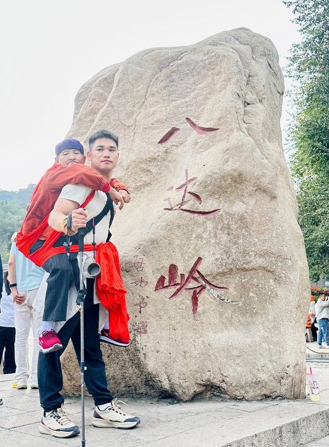 “之前一路上总是会有游客问背的是谁,还会围着拍照。这次想着国庆假期游客比较多,为了减少回答问题浪费体力,也不影响景区的秩序,就提前印好了字样。”谭卫民说,一路上,他向母亲介绍着沿途经过的景点,讲述着历史故事。母亲则趴在他的背上,兴奋地四处张望。
