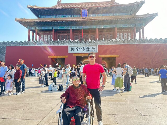 谭卫民带着母亲游览故宫。