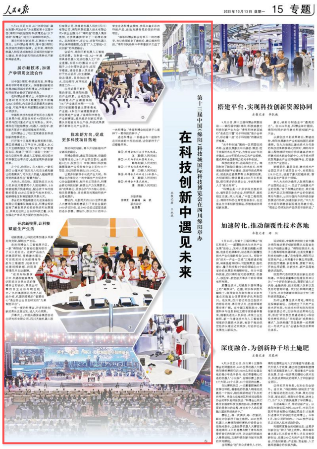 9月26日至30日,以“协同创新·融合发展·开放合作”为主题的第十三届中国(绵阳)科技城国际科技博览会(以下简称“科博会”)在四川省绵阳市举办。
