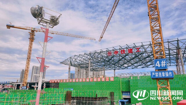 “以前的成都站和城市是脱离的,两侧都是单行道,老百姓通行不便,改造后将与地铁、过境道路、上盖公园、南广场、公交场站、长途枢纽、东西下穿隧道等组成集多种交通方式于一体,兼具城市交通疏解、文娱商业功能的综合型交通枢纽。”中铁八局成都车站站房项目部总工程师杨杰详细介绍,项目建成后,轨道交通衔接更加便捷,30分钟可达成都东站,50分钟抵双流国际机场,1小时至天府国际机场,“目前项目已完成整体进度的60%以上,将于2027年与成渝中线高铁同步开通。”