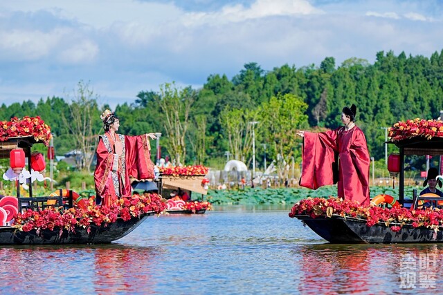 岔岔河岸边,“舟游帅府”项目的码头前排起小队,木质游船缓缓划过水面,游客们举着手机拍摄两岸的风景,不时有人对着“鱼鳞坝”的潺潺流水驻足打卡。傍晚时分,核心区的广场上早已坐满等待烟火秀的游客,孩子们拿着彩色气球奔跑,大人则围着售卖本地竹编、特产的摊位挑选伴手礼,田园间满是热闹的烟火气。