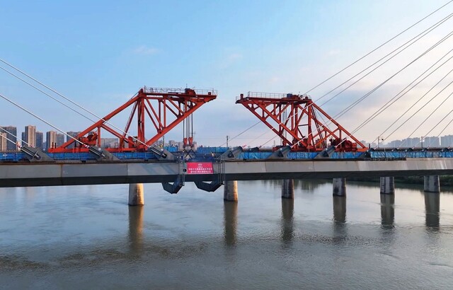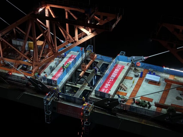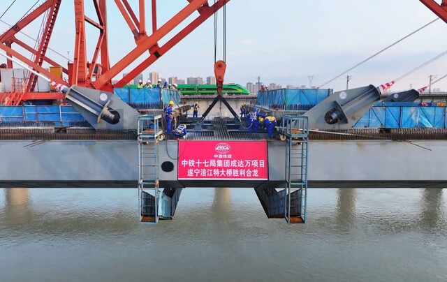 记者从成达万高铁公司获悉,10月14日,随着最后一节钢箱梁经过32小时的吊装和焊接,标志着成都至达州至万州高速铁路(以下简称:成达万高铁)全线控制性工程遂宁涪江特大桥顺利合龙,为成达万高铁按期通车奠定了坚实基础。