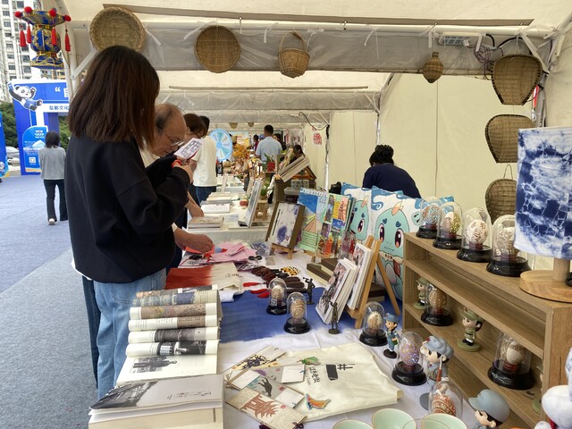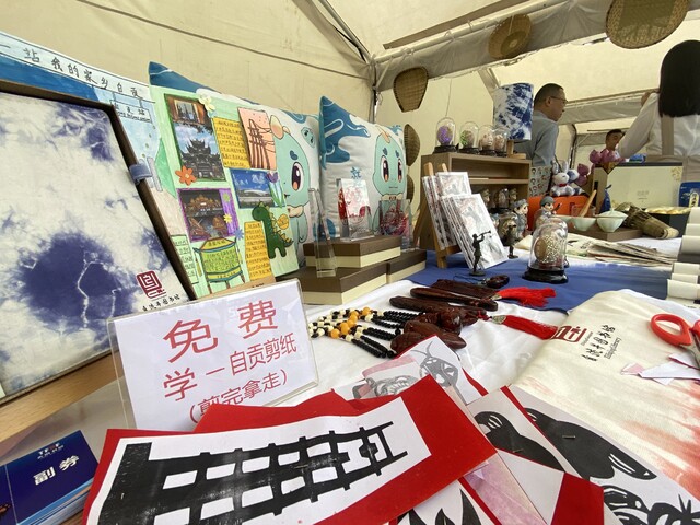 一根根丝线,穿梭在千变万化的靛蓝色世界里。自流井“盐韵自井 文脉书香”主题展台以传统“小三绝”扎染、剪纸等元素为主,沿着青少年阅读主线,展示出《百年自流井》《西场盐商》《自流井乡愁》等特色盐文化书籍;扎染、剪纸等传统文化元素融合的青少年手绘图书、绘画作品;现代简约造型与传统扎染工艺相结合的扎染台灯、笔记本,剪纸元素的书签,茶具等文创产品;卢德铭烈士图书等,还有来自乡镇村民原创的非遗竹编、精品木雕……自流井非遗正以喜闻乐见的方式弘扬着优秀传统文化。