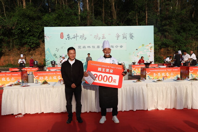 围观人群举着手机记录“舌尖上的匠心”,现场满是烟火气。选手李国英擦着额头的汗说:“站在这比赛不只为拿奖,更想让更多人知道,咱们飞龙峡的东升鸡就是生态又好吃!” 她制作的麻辣鸡香气扑鼻,引得众人垂涎。