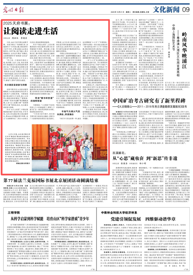 本届书展还打破展馆边界,将分展场启动仪式搬进凉山建昌古城、宜宾李庄古镇、眉山三苏祠博物馆等文化景区,并在武侯祠、阆中古城等热门景点设立地标书市,针对三星堆、大熊猫基地等景点首发“文旅珍藏版”藏书票,同步开展“天府守艺人”非遗体验、名家签售等活动,为读者带来“看书即赏景”的独特体验。