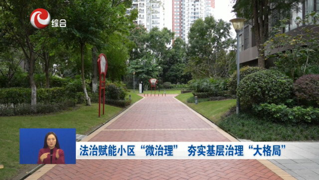 南充市委依法治市办秘书科科长 邓小莉:我们将通过试点小区总结经验做法,在更大范围深化创新探索,进而引导小区治理向责任主体懂法、运行机制尊法、小区管理依法、居民群众学法、化解矛盾靠法、共建共治用法转变,加快构建权责清晰、依法履职、多元共治的良好格局。