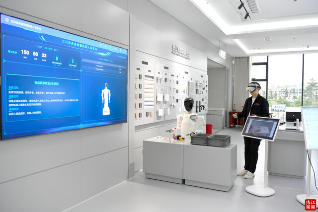 “通过我们的训练,可以不断收集在平时在操作中遇到的一些情况,比如VR设备映射延迟、定位点偏差等数据,反馈给开发人员进行进一步调整。”四川省具身智能机器人训练场技术人员刘豪文表示。