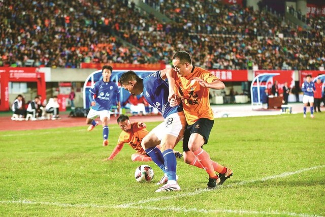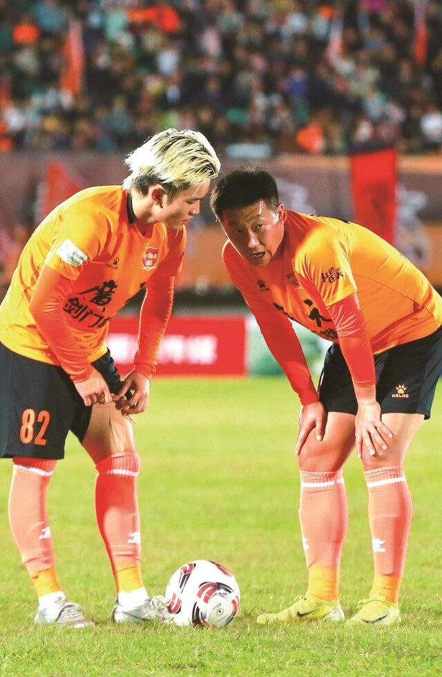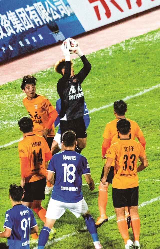 晚7时35分,哨响划破夜空。比赛开场,橙色如火焰奔涌,红色如钢铁灼热。德阳队攻势猛烈,主场作战的广元队,在禁区前沿筑起一道移动的橙色长城,每一次拦截都干净利落,每一次扑救都预判准确,你来我往间,比分始终紧锁。