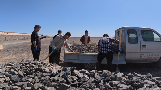 陆遥:为了保护戈壁脆弱的生态。我们特意把满载石料的大货车停在距离修复地点3公里外的地方,然后用小货车一点点地转运,像蚂蚁搬家一样。戈壁表面的黑色砾石层只有薄薄一层,下面是很厚的碱土,这种地貌需要上百年才能形成。一旦被重型车辆碾压,痕迹几乎无法消除。有人建议“把压进去的石头抠出来就行了”,但实际情况要复杂得多。我们宁愿自己多跑几趟,也要尽量减少对环境的破坏。