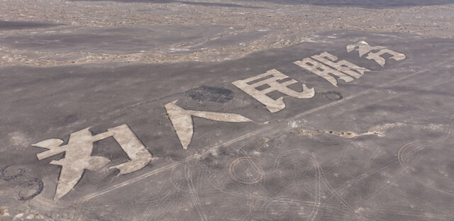 作为易车成都工作室的编导,陆遥和他的“略靠谱旅社”团队,在卫星地图上发现,新疆哈密市伊州区一片戈壁上有巨大的“为人民服务”标语。故事的开端,便源于一个内容创作者的职业敏感——最初,他们只是想探寻这些大地艺术背后的航空军事史。