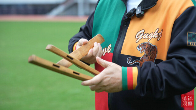 金钱板是四川地区传统曲艺形式,由快板、莲花闹演变而来,表演融合打、说、唱、演于一体,其表演节奏明快、语言诙谐,常通过“数板”“唱词”结合展现技艺,2008年被列入国家级非物质文化遗产名录。在赖道红创作的唱词《川超雄起》中,金钱板通过足球主题的唱词与击板节奏,将传统曲艺与现代体育结合,既传递竞技激情,又彰显地域文化特色。