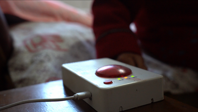 一键报警器静卧床头——白色小方盒,红色大按键,结构简洁明了。“他们安报警器的时候就跟我说,按一下就有人来。”邱正生轻轻按下按键,不到两秒,报警器里就传来社区组长邓玿艳急促的声音:“老人家,有啥子事情吗?”记者马上表明身份,说明来意,邓玿艳的语气缓和下来。“我是他邻居,也是紧急联系人。”邓玿艳说,只要接到老人的呼叫,她会先问清情况,要是情况紧急,就一边打120,一边往他家跑。要是日常需求,比如缺米少菜,也会帮着采购顺路送来。