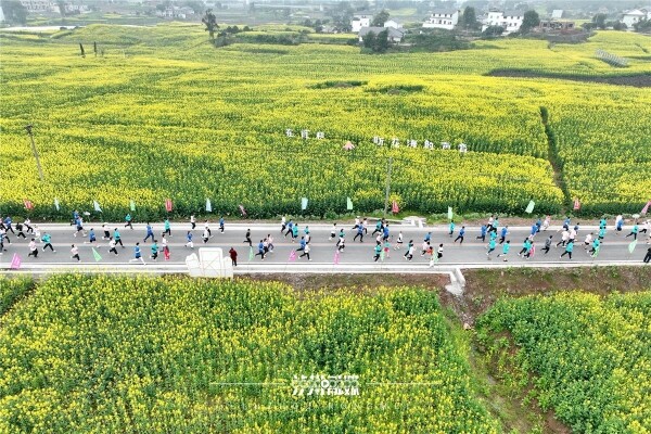 今年3月,来自川渝的500余名跑者齐聚泸县百和镇,在春意盎然的赛道上奔跑。潘杰 摄