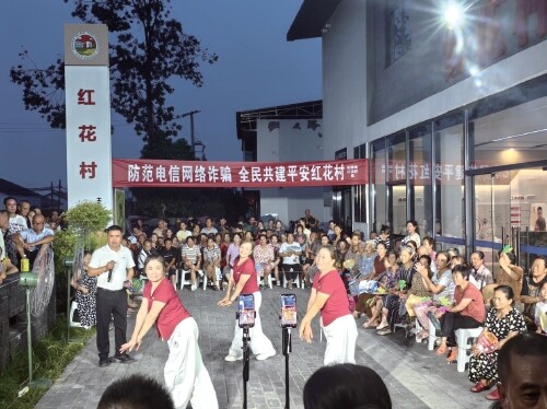 红花“村播”的诞生,源于村党总支书记曾辉的一次尝试。为了宣传红花村、丰富村民文化生活,他注册了“一朵红花曾书记”短视频账号,邀请村里有文艺特长的村民在村委会门口表演,并通过账号同步直播,没想到人气颇高。随着直播场次增多、热度持续上升,原本沉寂的乡村夜晚变得热闹非凡。眼下,参与“村播”的人员逐渐从本地扩展至周边地市,越来越多文艺爱好者、非遗传承人、专业歌手先后走进红花村,表演内容也逐步从歌舞拓展至杂技、小品等。曾辉作为“村播”的发起者和主播,成为连接村党组织与群众的桥梁。通过一场场直播、一次次互动,村党组织从幕后走向台前,从管理转向服务,群众对党组织的认同感、归属感显著增强。